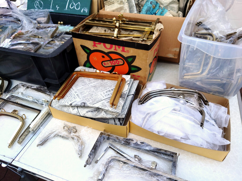 また、2024年にバッグ職人さんが持っておられた在庫を販売するのに金具まつりを一度開催しましたが、その時の残りもあるので一気に販売したいと思います。売り切れなかったものや、多すぎて当時は仕分けしきれずにそのままになっているものをお出しします。がま口の口金や、謎のレトロ金具なんかもいろいろあります。