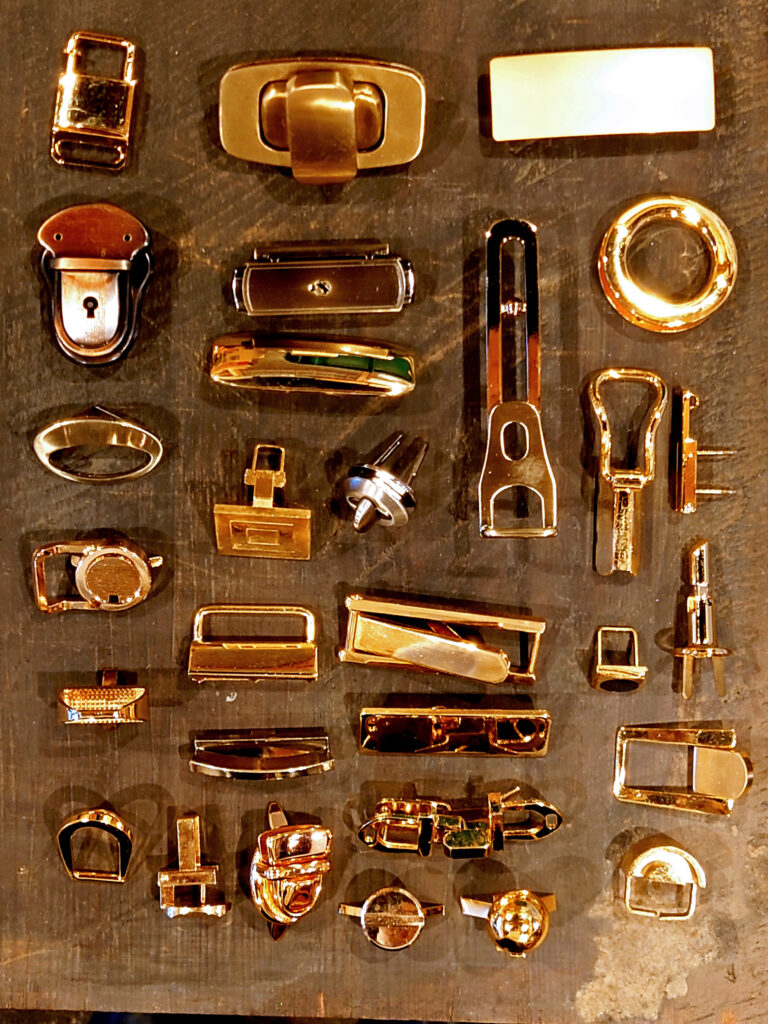 バッグメーカーさんから、古い金具をたくさんいただいたので、それを販売します。デッドストック品なので、あるだけ&なくなり次第終売します。Dカンやキーケースの金具、尾錠などなど、色んなものがあります。写真に写っているのはほんの一部。この数倍の量があります、、、お願いなので一緒に減らしてください笑